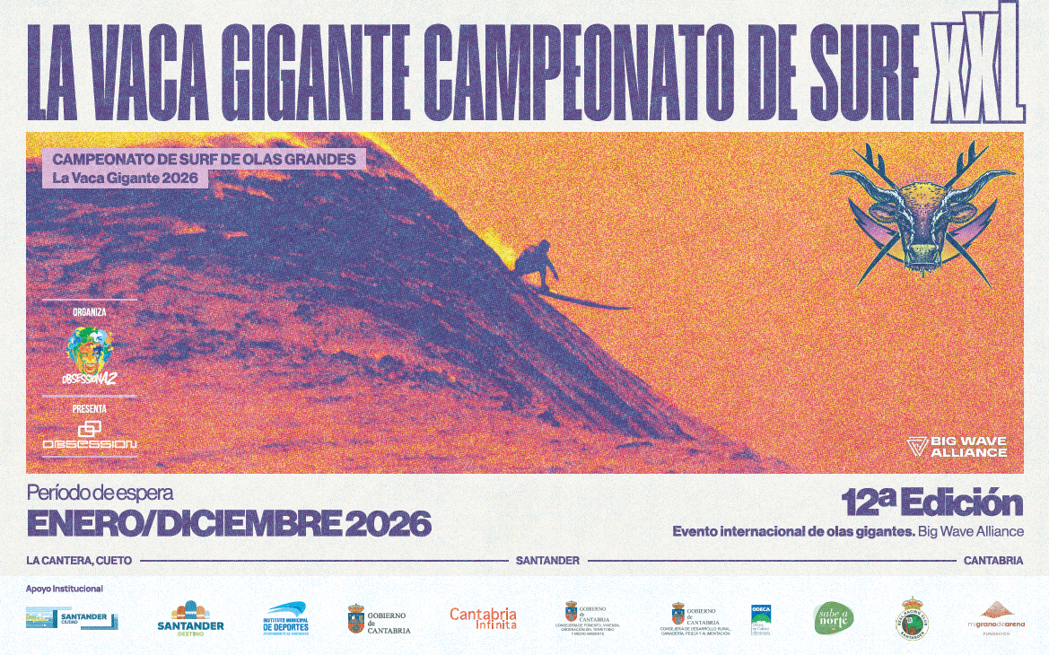 La Vaca Gigante 2026 ya está en marcha y Santander vuelve a situarse en el mapa mundial del surf de olas grandes. El campeonato internacional de surf XXL a remada afronta su 12ª edición con una novedad histórica: por primera vez, su período de espera se amplía a todo un año natural, de enero a diciembre, para garantizar que la prueba solo se dispute cuando el mar ofrezca sus condiciones más extremas.
